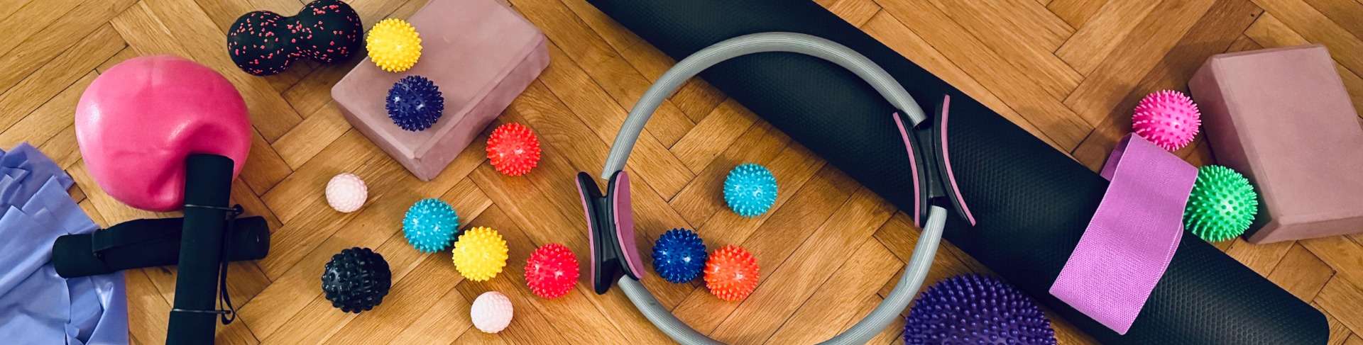 využíváme různé pomůcky pro zintenzivnění cvičení, posílení stability, ale též pro hlubší uvolnění a masáž